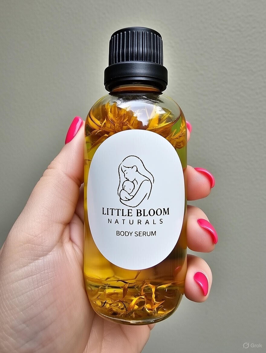 Our Little Bloom Naturals Body Serum is a lightweight yet deeply nourishing blend infused with soothing Calendula Oil and calming Chamomile Oil. Designed to comfort sensitive, dry, or irritated skin, this silky serum absorbs beautifully without leaving a greasy finish.